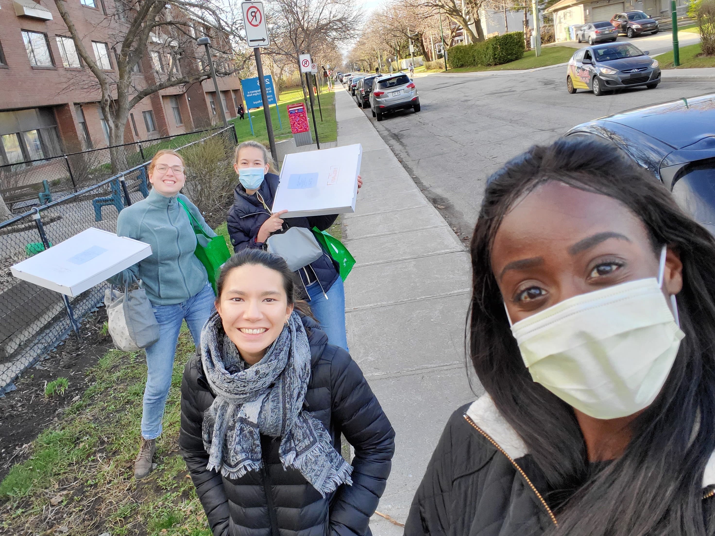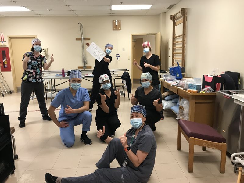 The last picture was taken on Friday May 1, 2020. Two of our good friends from the Emergency Department had volunteered to work at the CHSLD Vigi Mont-Royal. Serena and I made them goodie bags (from some of the extra donations mentioned in the second picture). After our shift at the hospital, we drove to the CHSLD to give them these bags, and to offer our support and encouragement during these difficult times. Given that we were all in different departments during the pandemic, this day really helped to provide a sense of solidarity. It helped to share our stories and our struggles with each other.