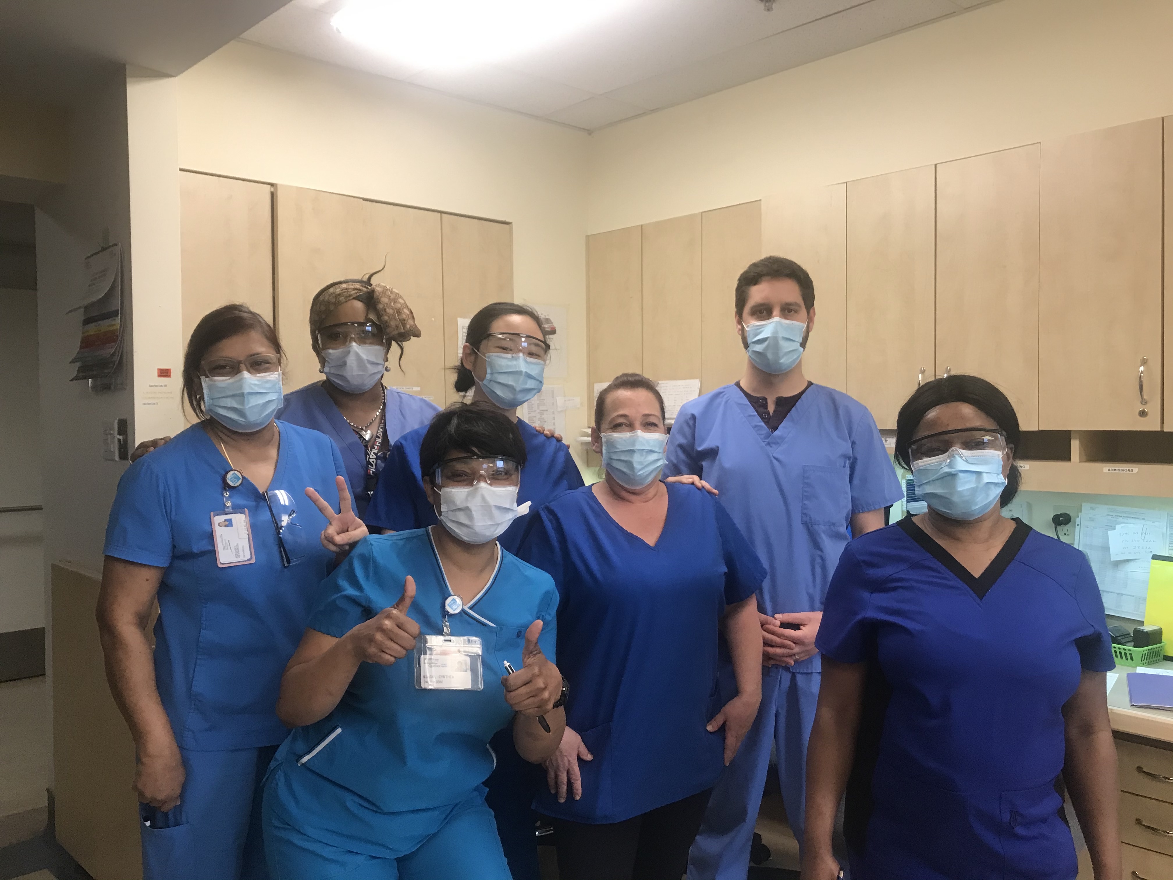 Sylvia Zhu, Physiotherapist Rehabilitation Richardson Hospital A day of coincidence! Our team was matching not only with our positive energy or face masks, but also our blue scrubs.